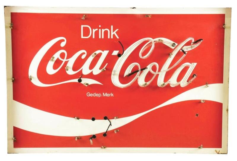 DRINK COCA-COLA PORCELAIN SIGN W/ ADDED NEON.