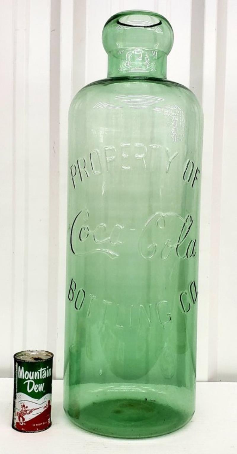 Large Embossed Glass Coca Cola Display Bottle, Dec. 25, 1923 w/ original metal bottle cap - 20" tall