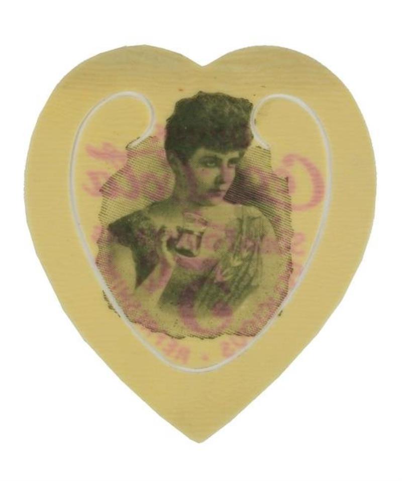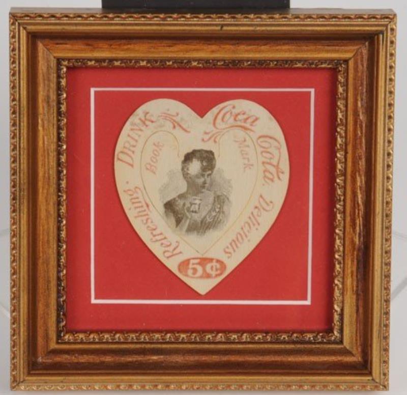 FRAMED COCA-COLA CELLULOID HEART BOOKMARK.