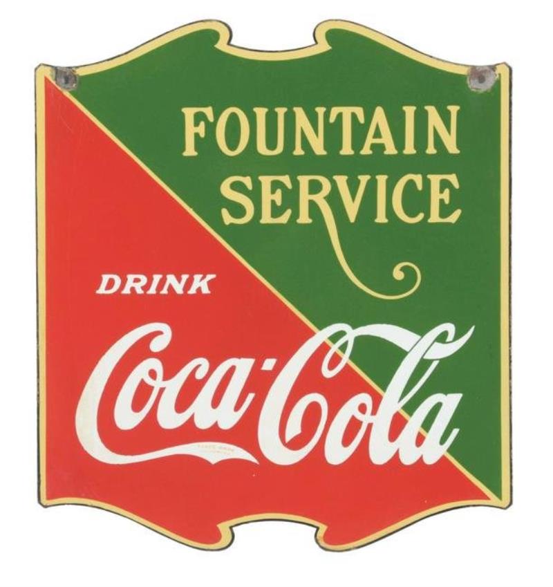 Coca Cola Fountain Service Die Cut Porcelain Sign.