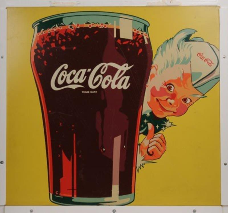 Late 1930s Metal & Masonite Coca-Cola Sign.