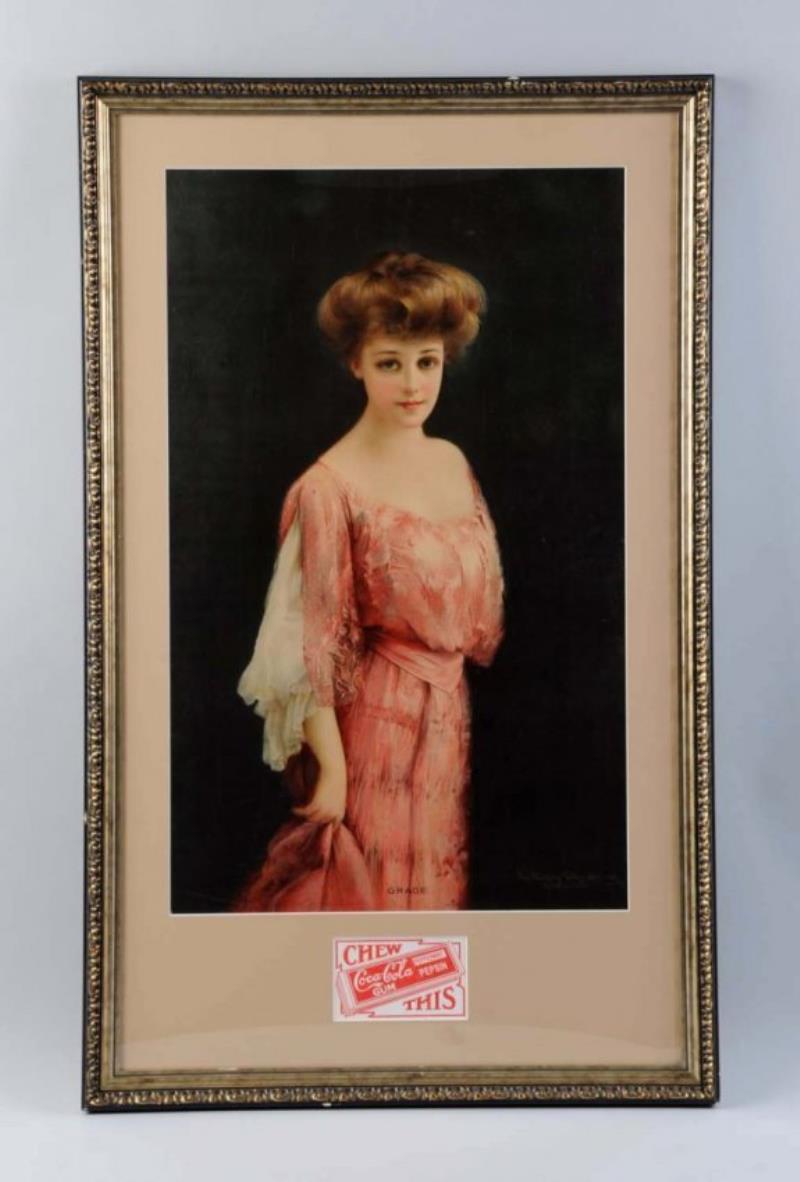 Framed and matted under Plexiglas. This is entitled “The Hocking Valley Girl” and was a beautiful stock image from the period. Coca-Cola used this same girl in some of their chewing gum advertising and a replica of the Coke Gum…