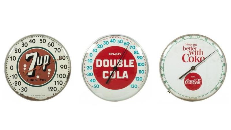 Lot Of 3 Soda Thermometers 7up Coca Cola