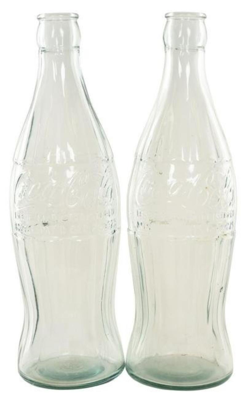 Pair of blue glass "Coca-Cola" seltzer bottles 12 1/4”h x 4 1/4”diam
