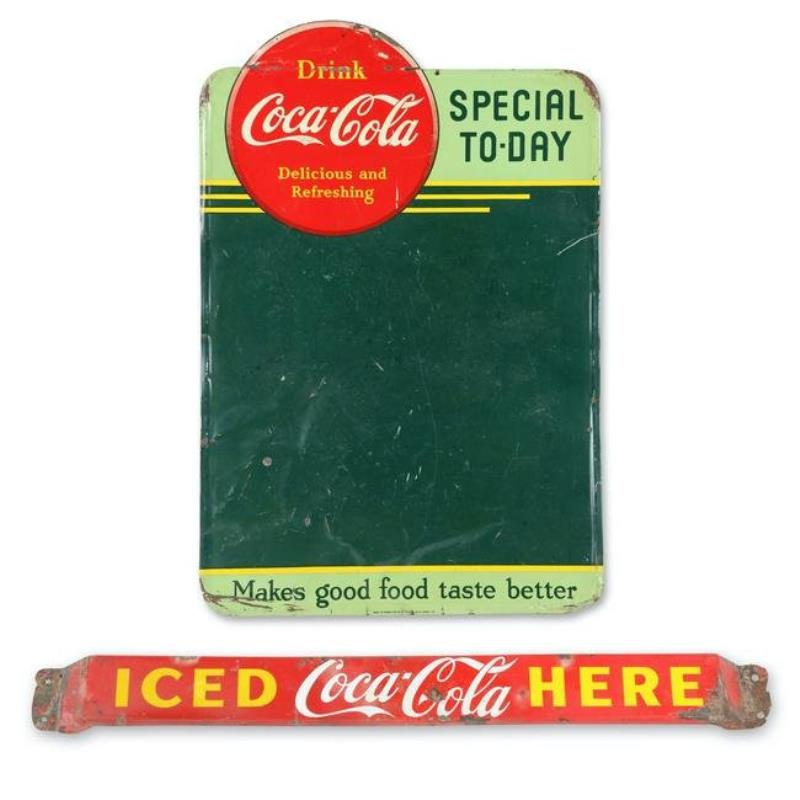 Coca-Cola door push bar, Coca-Cola Iced Here, porcelain, c.1950's, face is Exc, some loss on ends, 31"W.