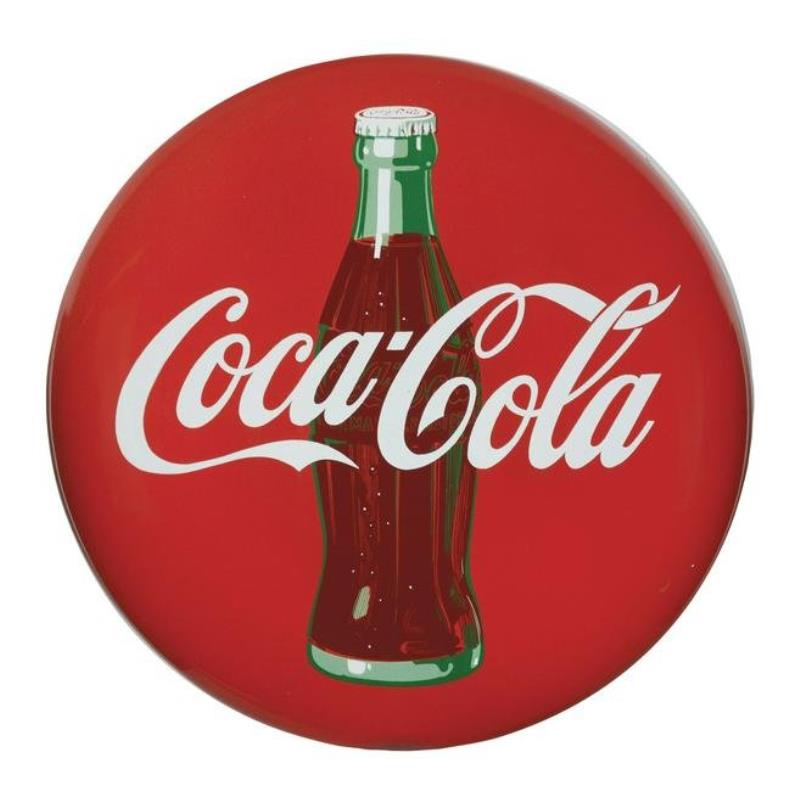 DSP. A very nice example of this seldom seen sign from Coca Cola. Side one shows excellent color & gloss throughout with no chipping in the field. The colors are bright and clean, and side one shows some light areas…