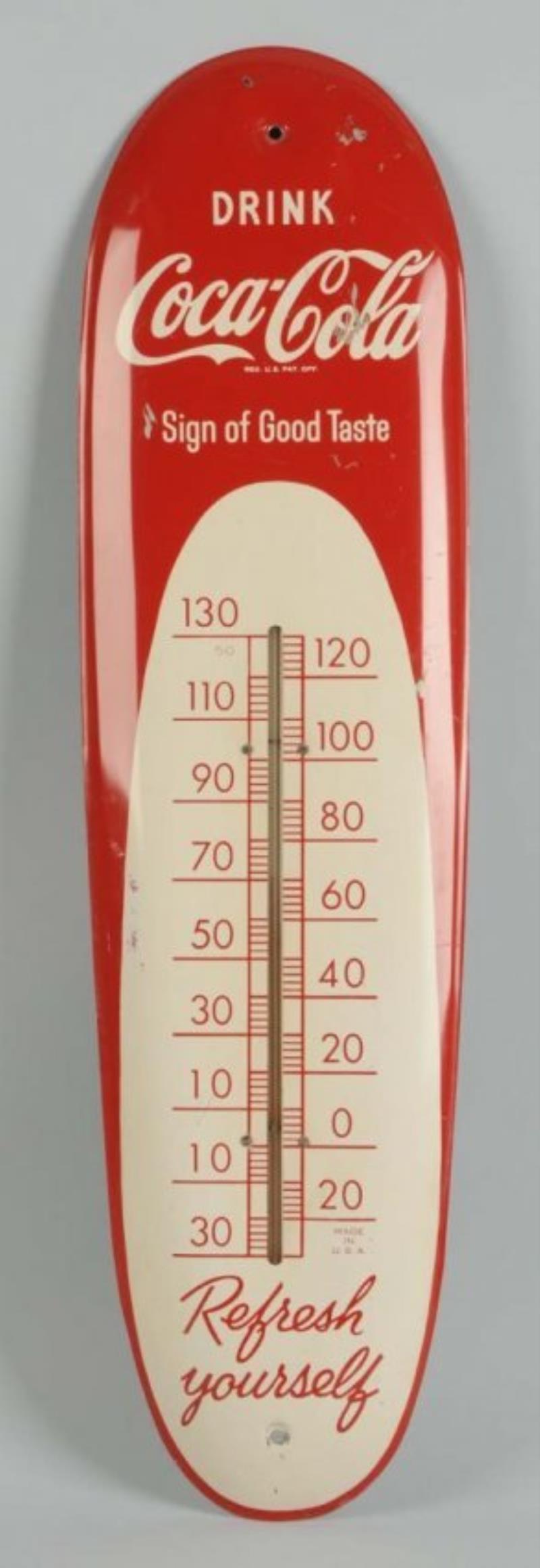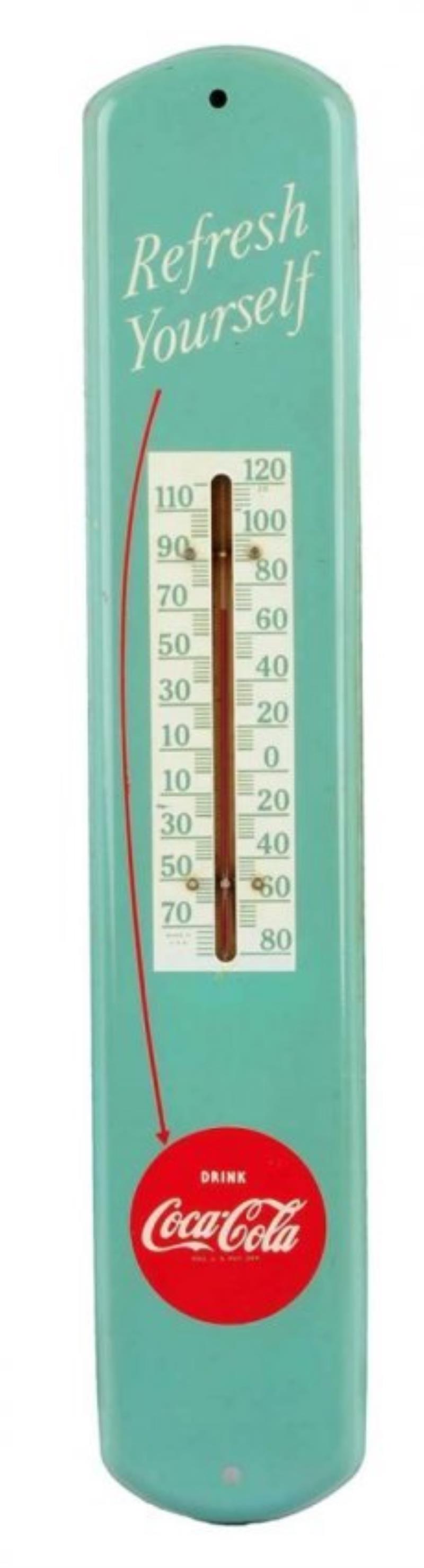 1950s Coca-Cola Tin Thermometer.
