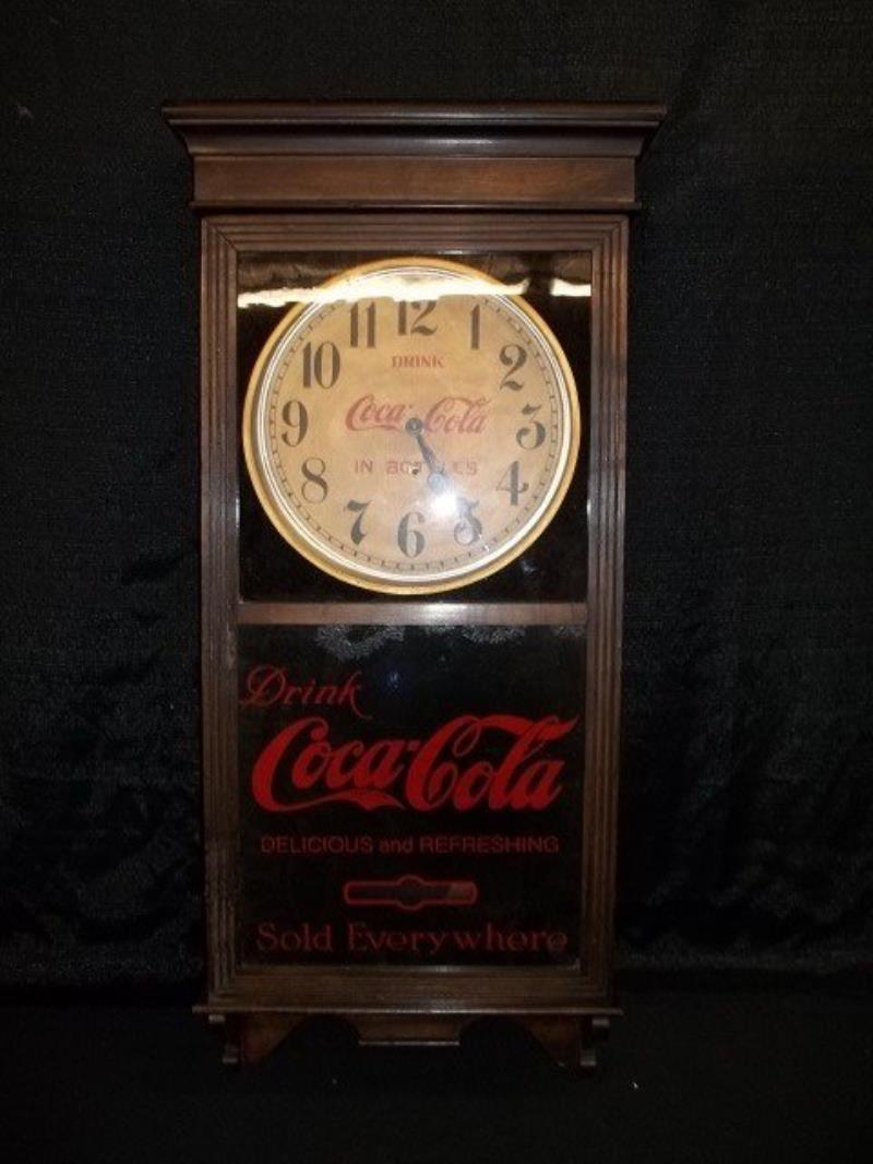 This is a Wonderful Antique Ansonia NY clock with a Coca-Cola Adevrtising on the face Face, in an Ornately Carved Wood Regulator Wall Clock Case. This clock is marked on the face “Delicious Drink Coca – Cola 5 Cent Refreshing”…