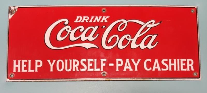 RARE Porcelain Drink Coca Cola Help Yourself Sign