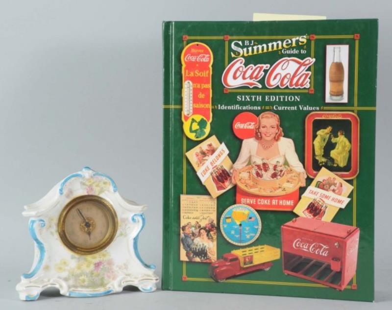 This is from the Mitchell collection and dates to 1905-1910. These small clocks were given to better soda fountain operators. Although the face is now darkened and faded to the point to where the Coca-Cola logo is nearly impossible to read, it is authenticated by a large 8 X 10” photo of the clock taken 15 to 20 years ago. It is also shown in B.J. Summer’s sixth edition of Coca Cola collectibles book on page 213. Both the photo and the book are included with the piece. Only light soiling and very light overall wear in addition to the darkened face is present. Condition (Very Good). Size Largest: 11" L.