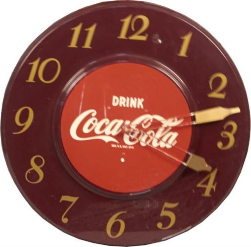 This Coca-Cola counter display clock was manufactured by Price Brothers, Inc., (Chicago and New York) in the early 1950s. The clock hasa round face (the more unusual version), and the base is milk glass that lights up stating, "Have a…