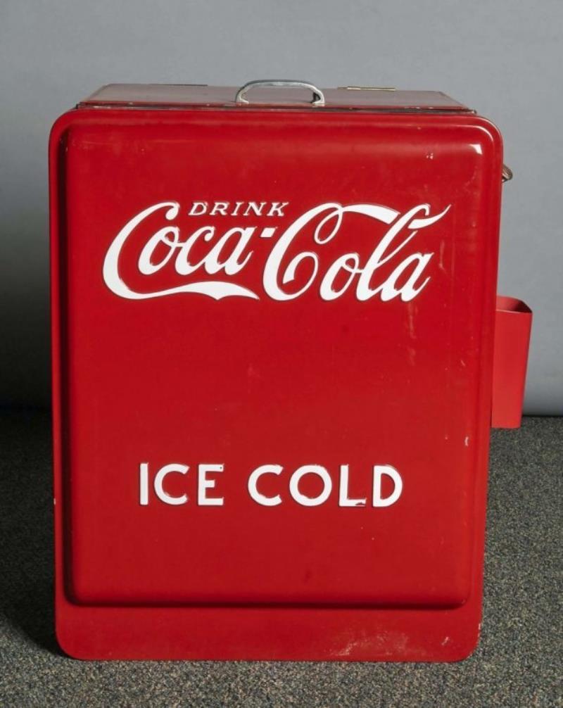 This early cooler has raised Coca-Cola lettering and is in all original condition. Comes with original condition. Comes with original bottle opener and often missing bottle cap catcher. The color and graphics are still bright, but there are some red…