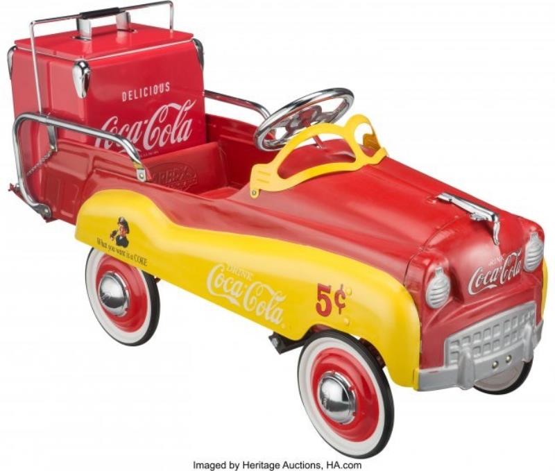 Gearbox Branded Coca-Cola Station Wagon Pedal Car with Reproduction Vintage Ice Chest Marks: Drink Coca-Cola, What you want is a COKE, 5ยข, GEARBOX 44 x 22 x 16 inches (111.8 x 55.9 x 40.6 cm) This Coca-Cola pedal station wagon…