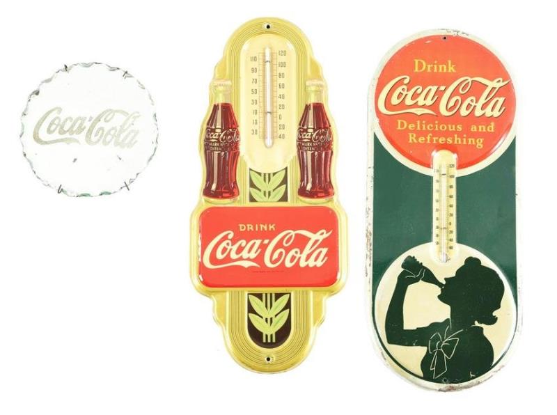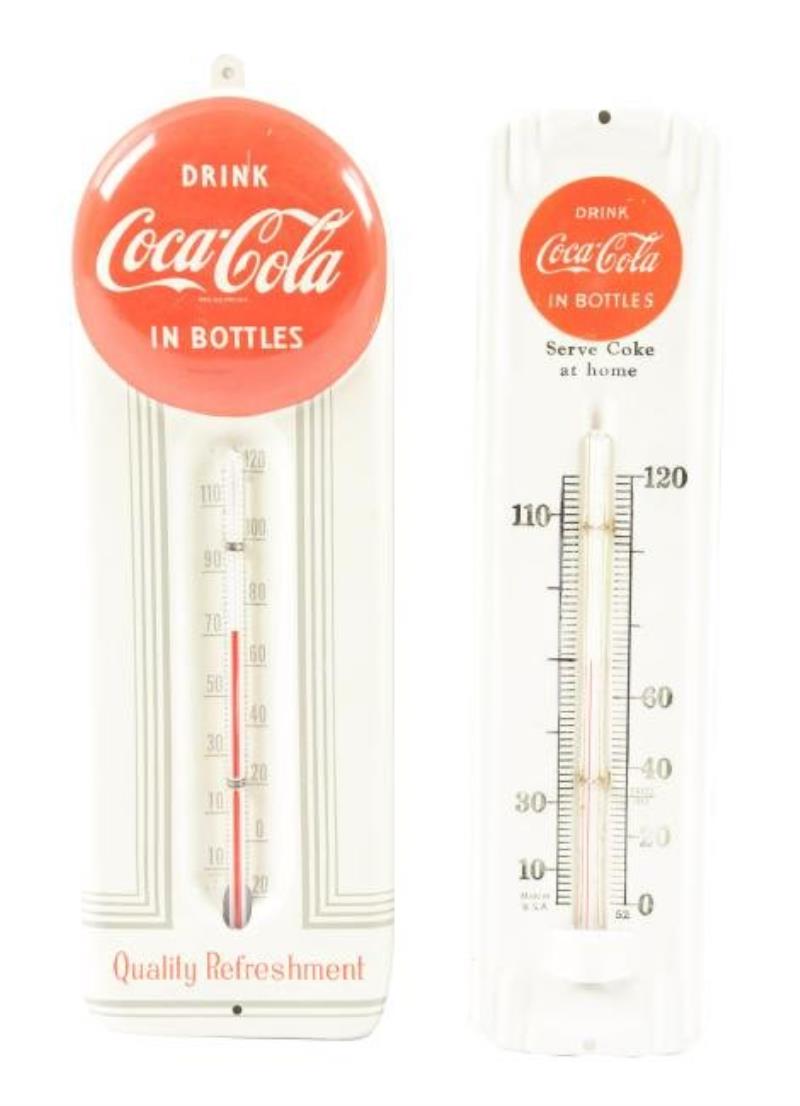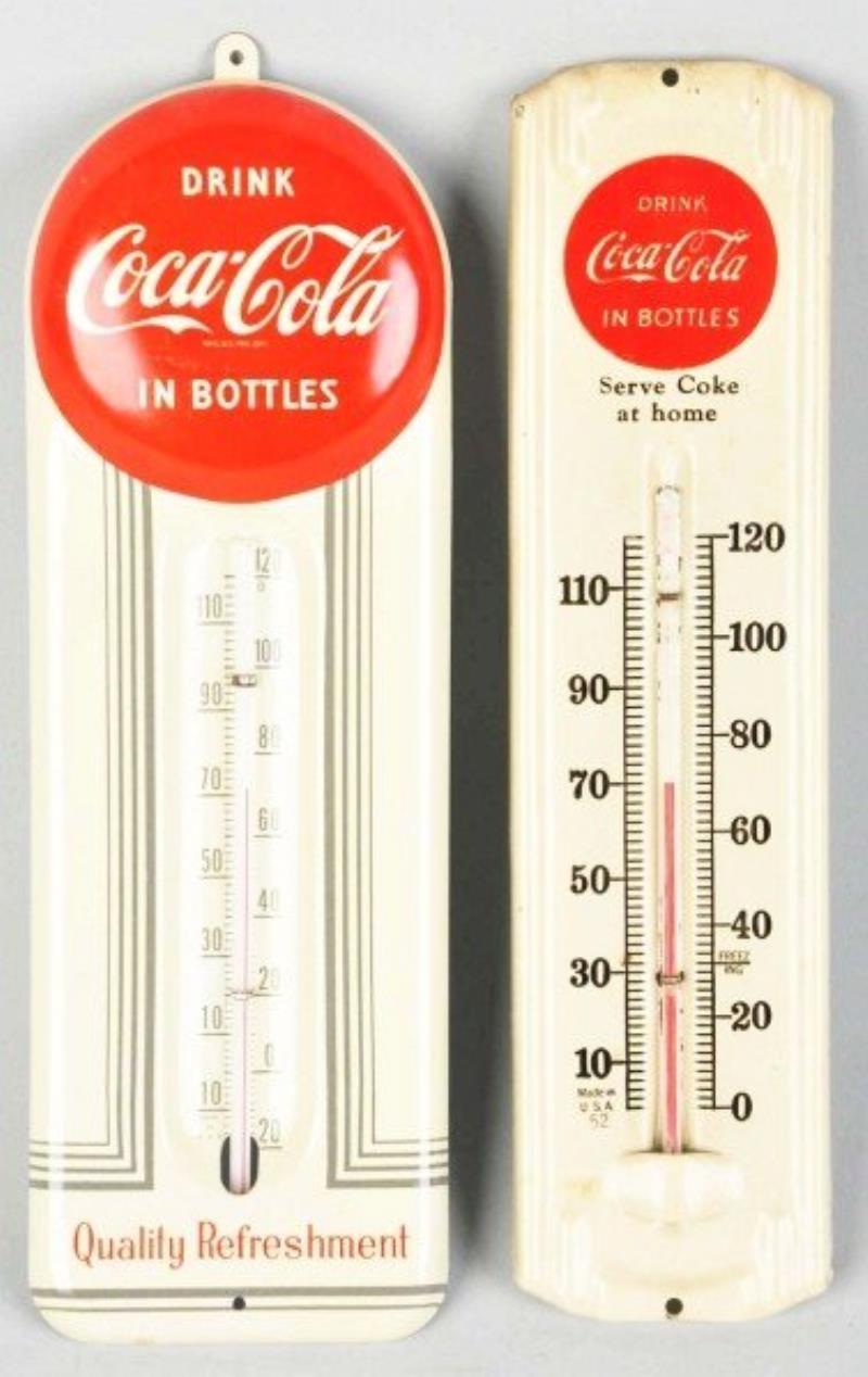 Description 1932 and 1940s. Includes one for Coca-Cola and one for Sun Crest. Only light wear, a few small scratches, and a few nicks to the Coca-Cola thermometer and almost no wear or marks noted on the Sun Crest.Condition (Excellent…
