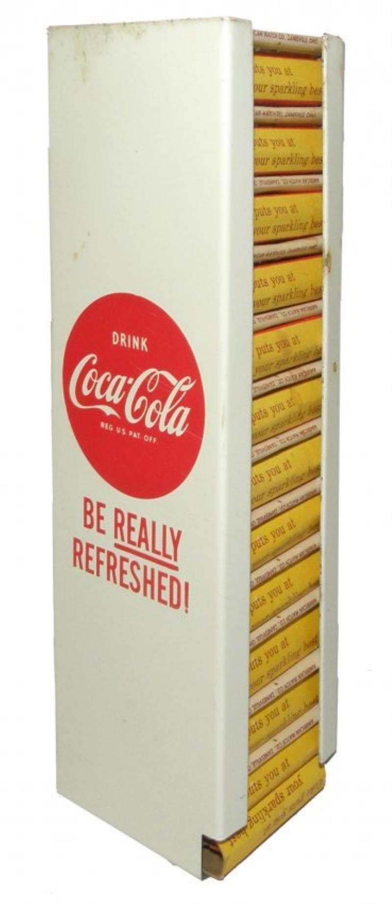 Complete with original Coca-Cola matchbooks. Very minor surface wear. 6 3/4" tall