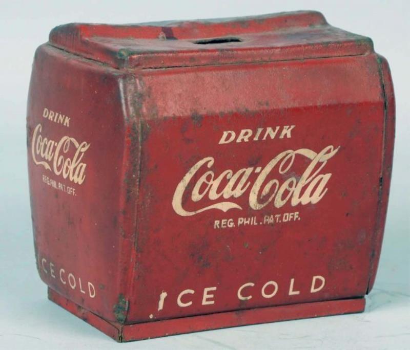 Wildly Scarce 1940s Coca-Cola Cooler Tin Bank.