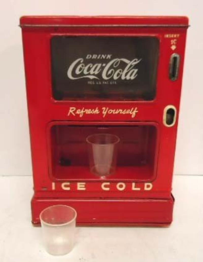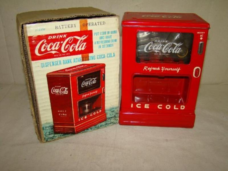 1950s Marx Coca-Cola Tin Toy Dispenser Bank & Box
